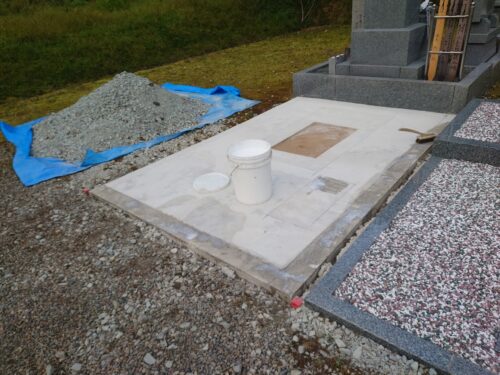 これらを使用して、外柵石(お墓の一番外側の石)を施工しました。