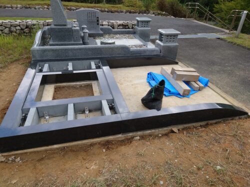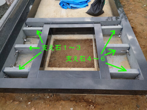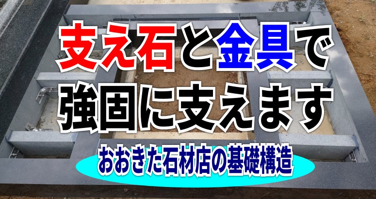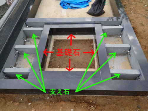 実はこれは、「信頼棺®」のお墓なのです。だから、基礎石を使ったり、支え石を使ったりして、より強固にお墓を支えています。