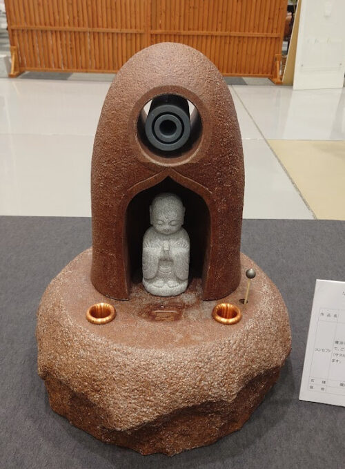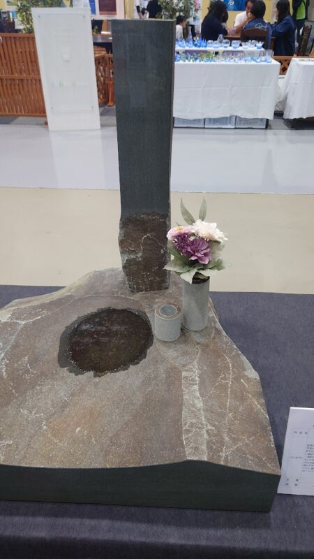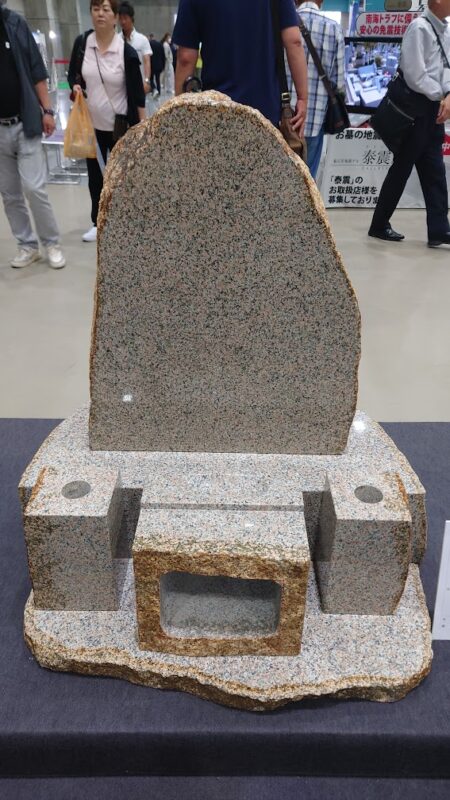 自然石(しぜんせき)を使ったお墓を自然(じねん)と読ませて、展示してあり、その自然墓(じねんぼ)コンテストがありました。これはすごく気に入ったお墓があったんですが、