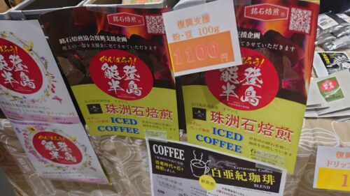 能登半島で取れる「玖珠石」(くすいし)で焙煎したコーヒーも災害支援として販売されていたので、購入させていただきました。