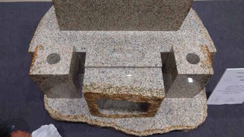 この石は岡山県で採掘される「万成石」独特の暖色系の色で、固い御影石で私も好きな石です。