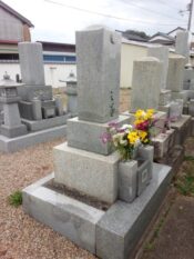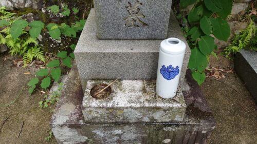 以前、お墓のリフォームさせていただいたお客様。石の台に陶器製の花立が乗っている珍しいタイプのお墓でした。多分「出石焼」という地元の白磁の陶器です。とても珍しいので、ちょっと素敵なお墓だな、と思っていました。