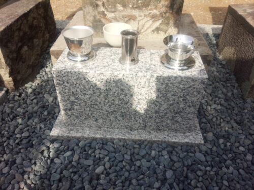 上の写真は水飲みがありません。お墓に陶器の湯呑みが置いてありますが、ステンレス製の湯呑み、あるいは、石製の湯呑みを作ることもできます。