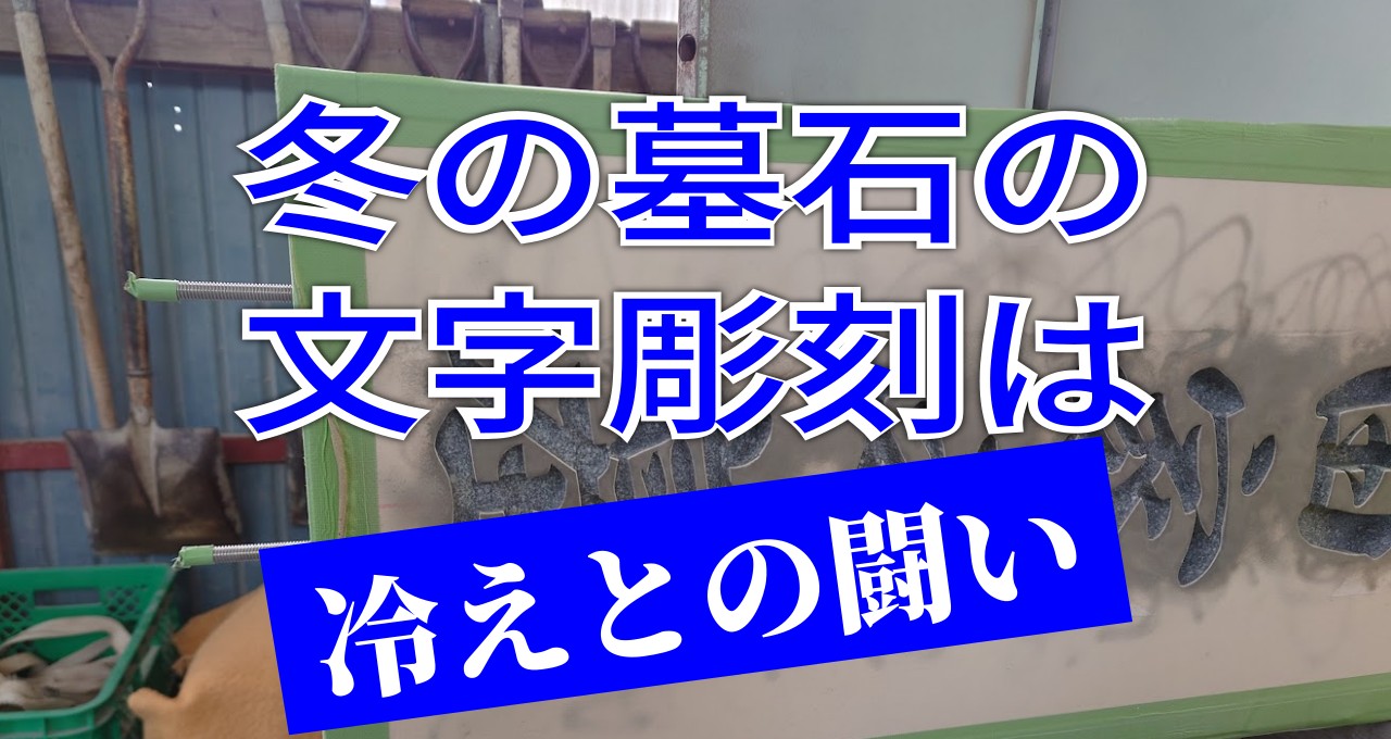 でも、冬の文字彫刻、特に正面の文字彫刻は時間もかかり、指先が感覚がなくなるほど冷たくなり、