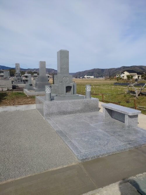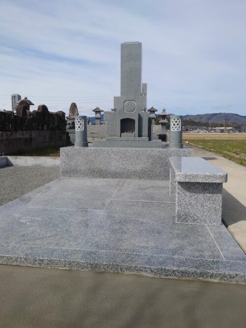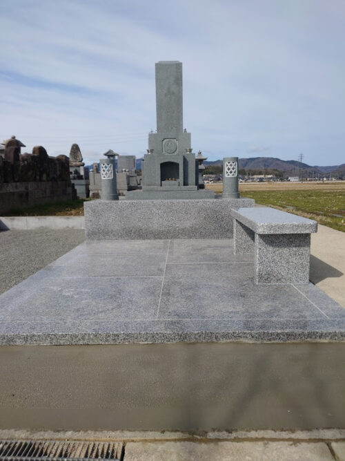 シンプル過ぎるくらいシンプルなお墓ですが、ベンチが一つあるだけで全然違うお墓に見えます。