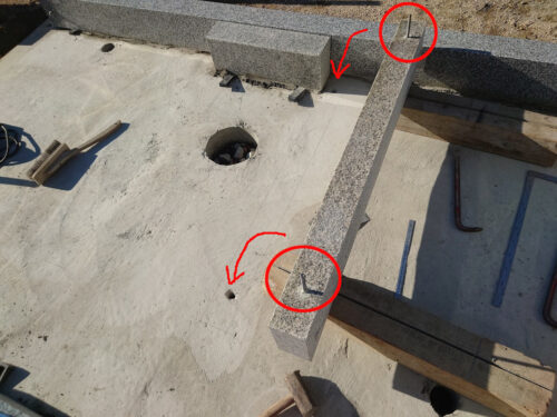それでも傾かないように、基礎工事は極めて大事ですし、もし傾いても、お墓の石がズレないように、外れないように、しっかりと固定することが大事です。