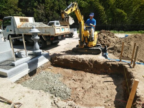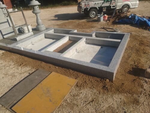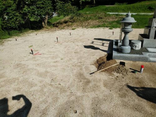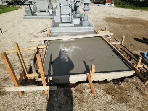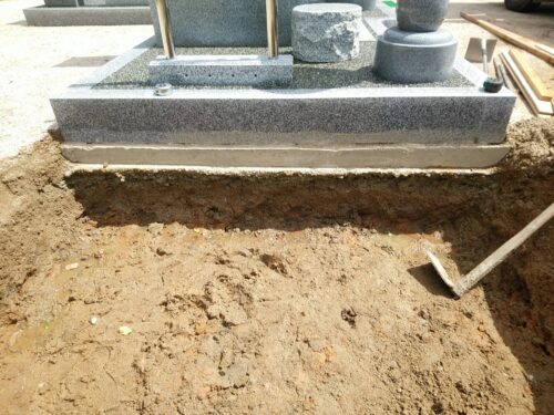 新しく造成された墓地区画ですから、どういう地盤かは、不明ですが、埋め土区画なので、あまり期待はできません。しっかりと基礎の部分を強固に作らないと。。。