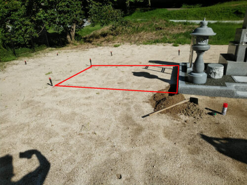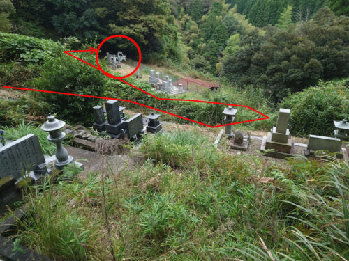 この赤線の枠内ですね。後ろにもお墓が建てられる予定です。手前は通路ですね。