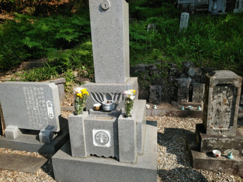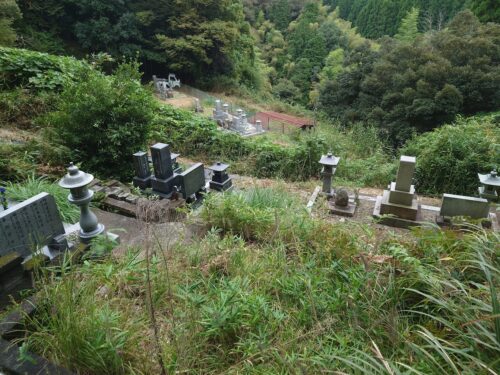 山の上にあるお墓。ここはお寺の裏山に点在している墓地で、かなり急こう配な斜面にお墓が立っています。