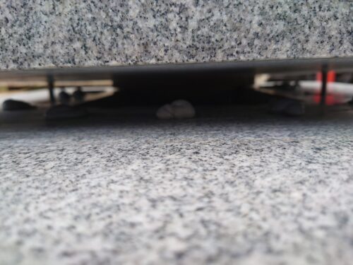 もちろん、ただ単に置くだけなら、簡単ですが、お墓の石って極めて重たいのです。すべてを計算したら、1トンを軽く超える重量です。しかも、均等に全体に重量がかかるのではなく、手前が軽く(石が少ない)、奥が重たい(石が多い)場合がほとんどなので、傾くリスクが極めて高いのです。