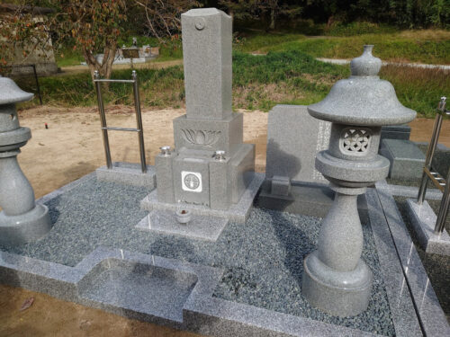 少し汚れ気味だったお墓の石もきれいにクリーニングして、灯ろう、塔婆立ても設置して、出来上がりました。