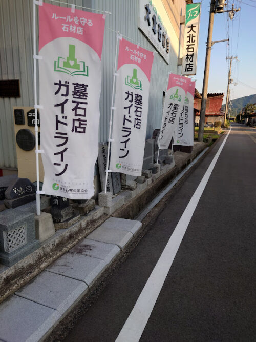 おおきた石材店では、このようなノボリを掲示しています。