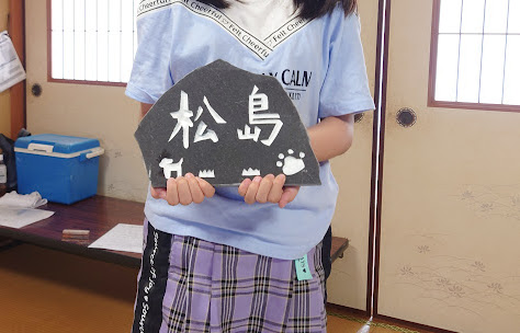 兵庫県の石でもある、「玄武岩」を使った表札作りをワークショップとして、作ってもらうというもの。この詳しい様子は後日詳しく書きますが、その一人の受講生が作った表札です。