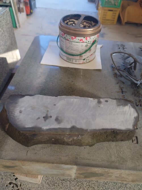 はい、磨きました。玄武岩は重たいのですが、実は普通の花崗岩(お墓に使う石)よりも柔らかいので、光沢は結構出てきます。しかもそれぞれ独特の模様があって、素敵なんですよね。玄武岩。