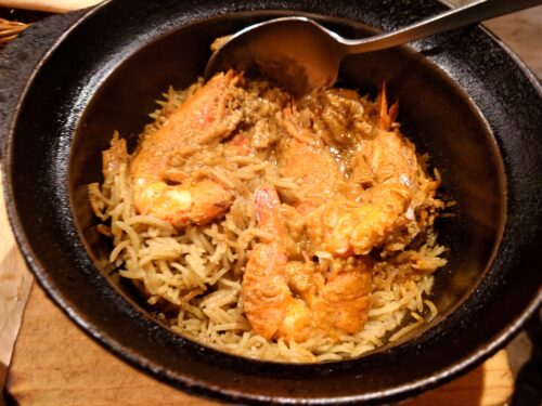 今度は期間限定メニューのエビビリヤニ。こっちはカラごとのエビが食べれるくらいの固さだったので、そのまま食べたんですが、これは好みが分かれるところ。。。