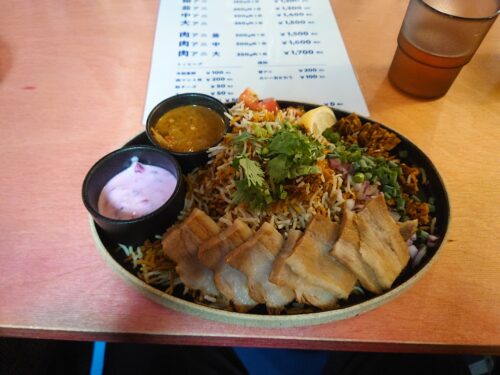 インド料理なのに、豚肉が乗った「肉アニ」は日本人仕様。インドでは考えられないのかも。