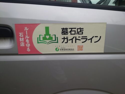 現在、一般社団法人 日本石材産業協会HPの「加盟店一覧」にてガイドライン登録店を検索することが出来ます。また、オフィシャルの「のぼり」「マグネット」等を製作していますので、店頭にそれを掲示されていることで確認することもできます。
