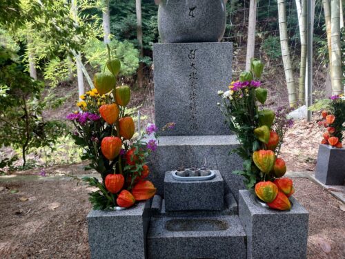 鬼灯がたくさん並んだ、分かりやすい、目立つお墓になったと思います。