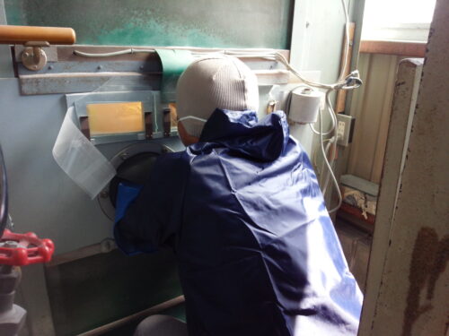 他の石材店が建てたお墓のお墓そうじをさせていただいた時、正面文字の汚れを落としていると、塗料が脆くなって、はがれてしまって、その中から、ブラスト彫刻で失敗した跡が出てきて、これは良くないな、と思ったことがありました。