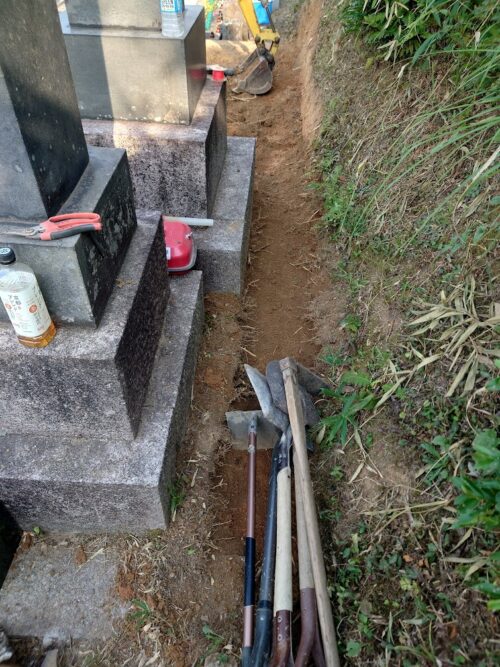 「毎年、笹の草取りが大変すぎるので、何とかしてほしい」というご依頼で、笹の除去を含めたお墓のリフォームをさせていただいています。