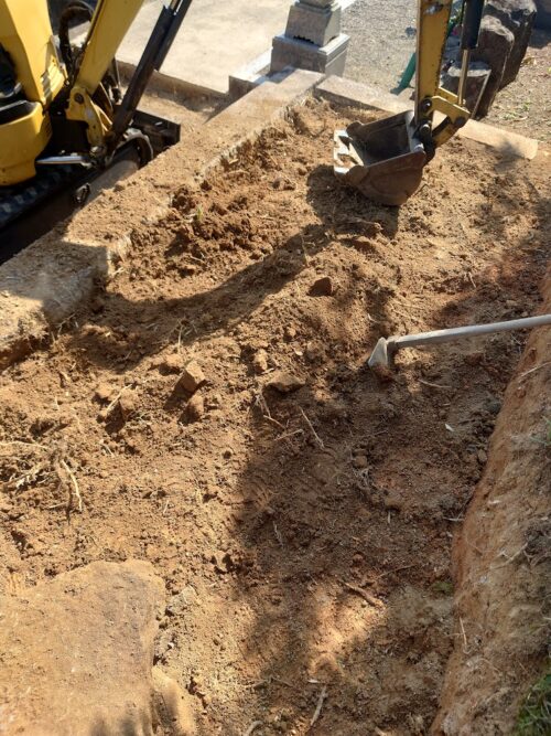 とにかく、大まかな部分は重機で除去、細かい部分は手作業にて、取り除きました。