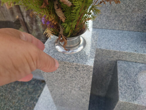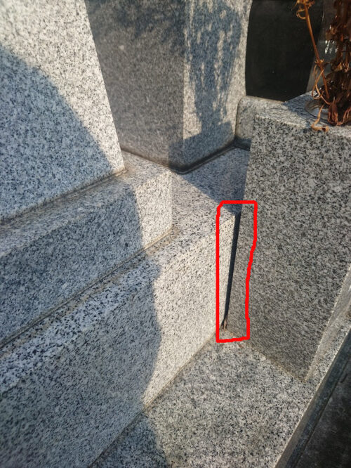 上はお墓の石の正面ですが、花立石の足元が欠けやすいのです。