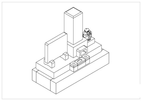 このお墓は、寺院の境内の区画で、左右は2mと普通なんですが、奥行きが90cmとかなり狭いのです。ゼロからの設計なら、やり方はいくつでもあるんですが、竿石と副碑、お地蔵様を納めるとなると、ある程度の設計上の制限が出てきます。