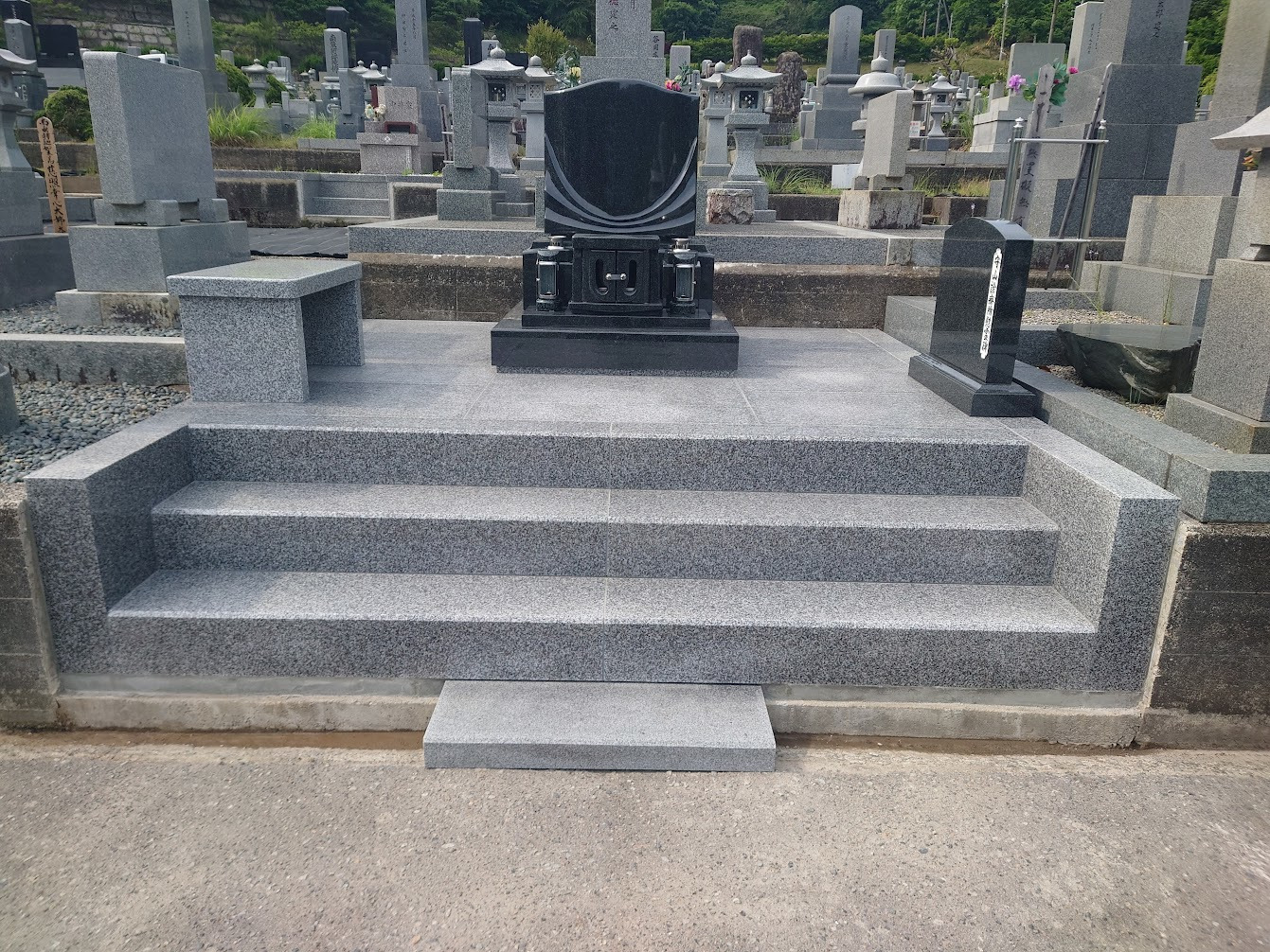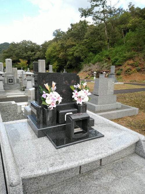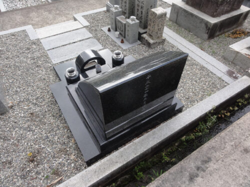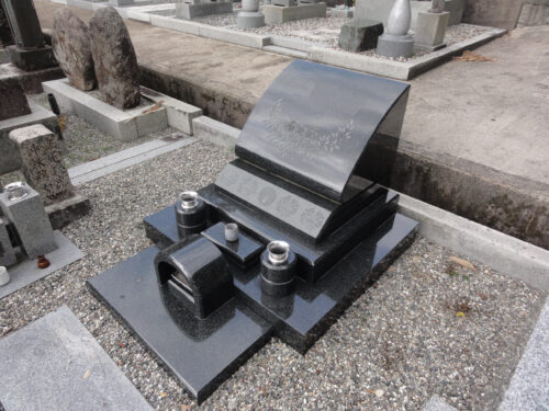 もっと濃い、黒みかげ石でも建ててみたいですね。黒が似合うデザイン墓です。