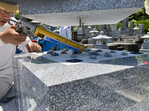 おおきた石材店でも以前は別の施工方法をしていて、接着剤の量も少ない頃がありました。そんな中で、他の石材店との交流の中で、自社の欠点、劣っている部分を理解し、改善してきて、現在の施工スタイルがあります。