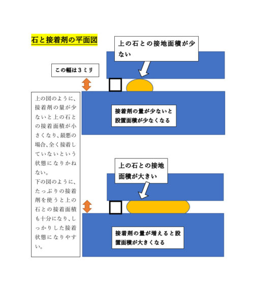接着材の量が少ないと、圧倒的に施工不良のリスクが高まります。接着面が小さくなってしまうので。