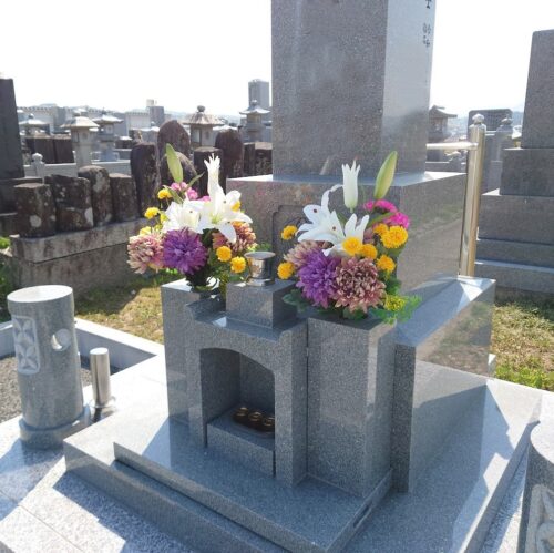 おおきた石材店で建てさせていただいたお墓には、条件付きですが、「岩田さんのお花」をプレゼントしております。