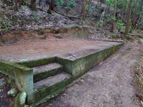 周囲は竹林で竹の笹が大量に降り積もる場所です。