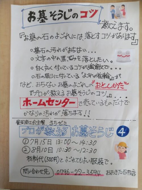 お墓そうじセミナー(7/15、8/10)開催します