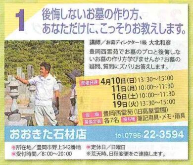 【 4.石のこと】 一覧 4.石のこと 初めてのデザインで久しぶりの石 2016/04/26 4.石のこと 「迷惑かけたくない」って本気ですか? 2016/04/15 4.石のこと 赤から白へ。(続き) 2016/04/13 4.石のこと 赤から白へ。 2016/04/13 4.石のこと お墓セミナー 2016/04/09 4.石のこと 「お客様の声」14 を更新しました。 2016/04/06 4.石のこと 墓相墓にもいろいろありますが。。。 2016/04/05 4.石のこと 「両家墓」の記事を見やすく見直しました。 2016/04/05 4.石のこと Q218~お墓にも花瓶ってあります? 2016/04/04 4.石のこと 【絶賛受付中】~「後悔しないお墓の作り方、あなただけにこっそりとお教えします」 2016/04/03 << < 303132333435363738 > >>