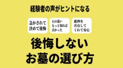 【 -お墓を建てる前】 一覧 お墓を建てるまでのいろいろなことを紹介しています。場所、費用、施工、石のこと、デザインのことなど多種多様です。 -お墓を建てる前 古いお墓の基礎はどうして残したらだめなの? 2025/10/04 -お墓を建てる前 「墓石の引っ越し」と「新しい墓石建てる」どちらがお得? 2025/10/03 -お墓を建てる前 豊岡市内の寺院墓地にお墓を建てたい方へ 2025/09/28 -お墓を建てる前 豊岡西霊苑のメリット 2025/09/25 -お墓を建てる前 私が建てたいデザイン墓 2025/09/13 -お墓を建てる前 「信頼棺®」の納骨口~坂田家お墓引っ越し工事② 2025/09/11 -お墓を建てる前 「雨漏りしないお墓」ってどんな構造? 2025/08/19 -お墓を建てる前 “あのとき言っておけばよかった…”墓じまいで後悔したこと 2025/08/09 -お墓を建てる前 石材店に聞かれて困ったことランキング 2025/08/08 -お墓を建てる前 実際にお墓を建てた方の“声”から学ぶ、後悔しない選び方 2025/08/07 12