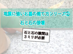 【 地震に強い施工】 一覧 地震に強い施工 地震に強いお墓シリーズ③~石とコンクリート 2022/05/30 地震に強い施工 地震に強いお墓の建て方シリーズ②~石の接着 2022/05/29 地震に強い施工 地震に強いお墓の建て方シリーズ①~芝台 2022/05/27 地震に強い施工 他人事ではないお墓の地震対策② 2022/05/14 地震に強い施工 他人事ではないお墓の地震対策① 2022/05/14 1234