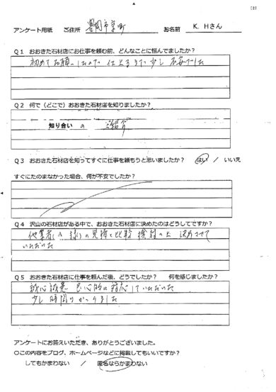 【 施工】 一覧 ブログ 安心施工の定番コンビ~ウェッジ式のアンカーボルト 2018/03/13 5.お墓の疑問 Q148~お墓を建てる時期⑤~夏は? 2016/01/19 5.お墓の疑問 Q147~お墓を建てる時期④~梅雨の時期は? 2016/01/19 2.お墓を建てる Q079~地震に強いお墓①基本編 2015/12/25 2.お墓を建てる Kさんのお墓工事(下見編) 2015/12/22 7.お知らせ 「お墓Q&A」の目次を修正しました。 2015/12/18 ブログ 「お客様の声」10を更新。 2015/12/12 3.お墓のリフォーム 樹脂固め~お墓のリフォーム② 2015/11/27 3.お墓のリフォーム 灯ろうが欲しい~お墓のリフォーム 2015/10/31 ブログ 初めての納骨口。 2015/10/28 123