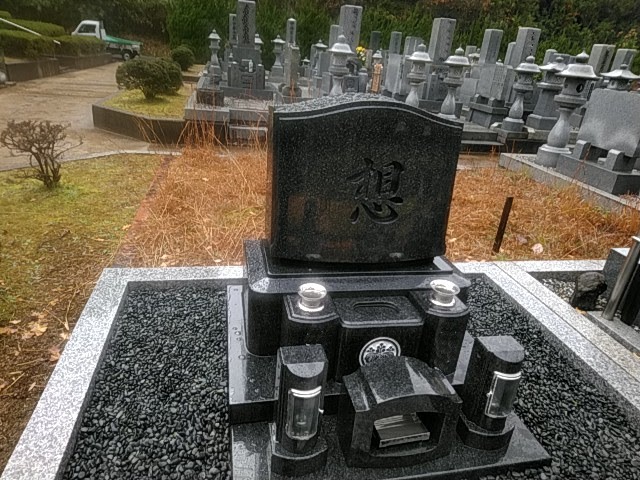 豊岡市営西霊苑に建てさせていただいたお墓です。雨降りの合間に施工させていただいたお墓なので、なかなか苦労しました。
