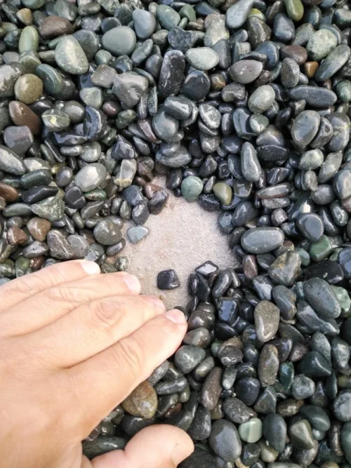 玉砂利を樹脂で固めたもの。いくつかのメーカーが商品を出していますが、モノによって、品質に差があります。