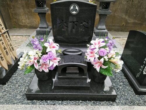 おおきた石材店が建墓したお墓が気に入られたようで、「同じ形のお墓を建ててほしい」とのご要望。 ただ、お墓本体迄