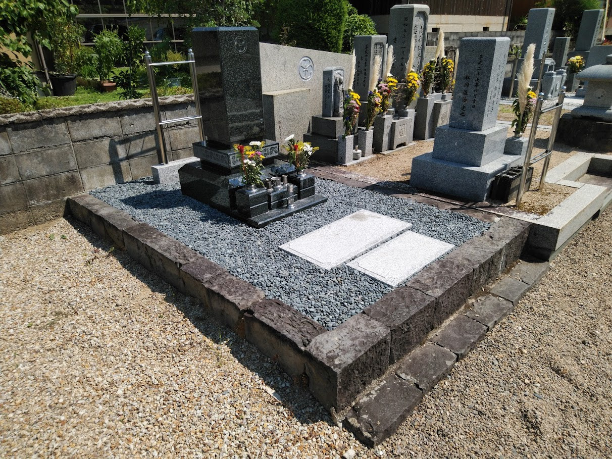 元々お墓の位置には玄武岩の外柵がすでに設置してありました。そこに新しいお墓を設置しました。