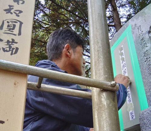 ② 直接、墓地に赴き、拓本(ご先祖様の文字の大きさを採取)し、同様の大きさ、デザインの文字を彫刻させてもらう
